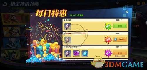 4、【限时神话UP】开服第三天开启指定神话召唤活动,每日可领取10抽,持续一周,可累计获得70抽。