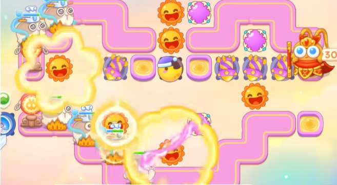 3、有金币了在建立一个导弹,继续打钱袋,钱袋打掉之后在建立一个太阳。