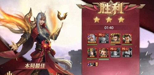 战斗过程来看,基本上还是比较轻松,我还留了一个阿斗和司马懿没有上,前排配合雄兵百万能顶住,后排全部满血。