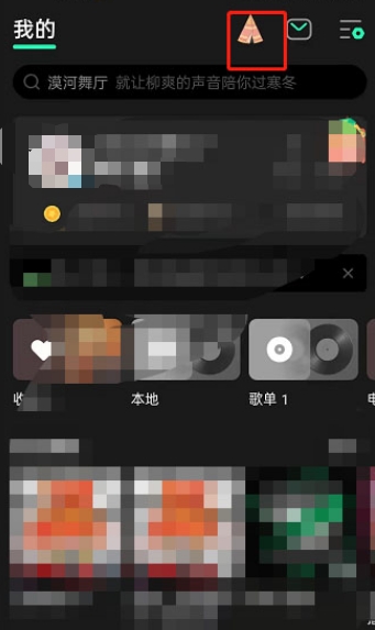 1、在QQ音乐,点击上面的帐篷图标就可以进到宠物玩法中。