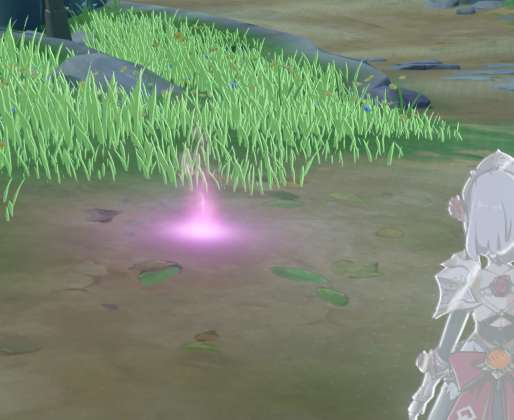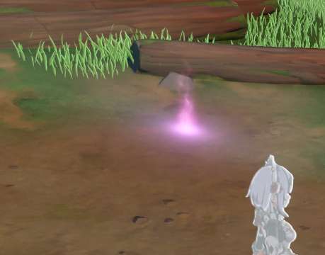 打开元素视野后,我们可以看到,在任务指引的位置会出现紫色的光点,这个就是元素痕迹了。