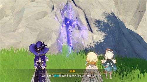 3、来到山上之后,我们依旧能够开启元素视野去看到紫色光点,之后就重复以上的行为直到找到遗迹为止。