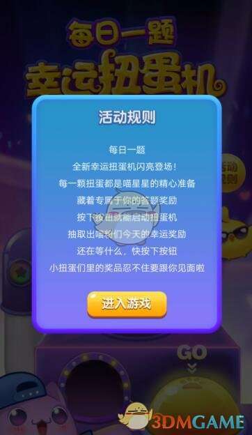 点击菜单栏【微信礼包】→【每日抽奖】,即可在答对题后进入扭蛋机进行抽奖,100%中奖哦!3星经验宠、积分*88,还有经典模式及冒险模式的各种道具统统都有哦!