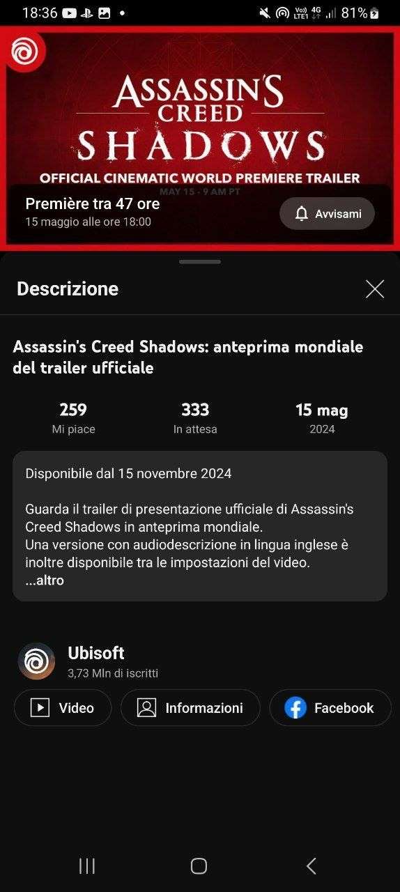 此后有报道称,育碧油管频道的预告片官方描述显示,游戏发售日期为2024年11月15日,后来官方通过编辑又删除了这一信息。