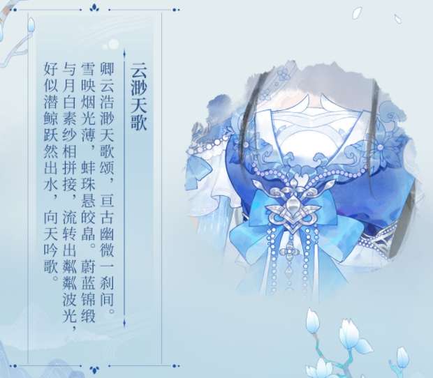 蔚蓝锦缎与月白素纱相拼接,流转出粼粼波光,好似潜鲸跃然出水,向天吟歌。