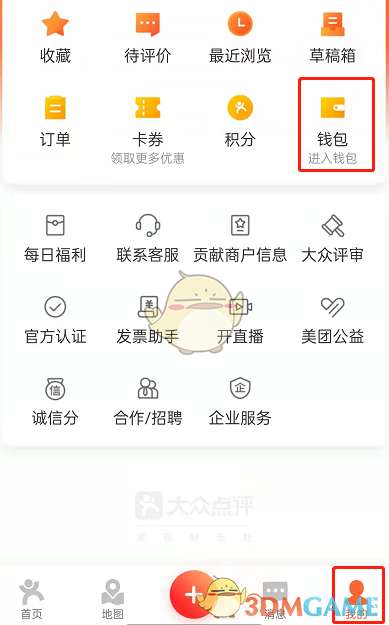 1、打开大众点评,点击我的,点击进入钱包。