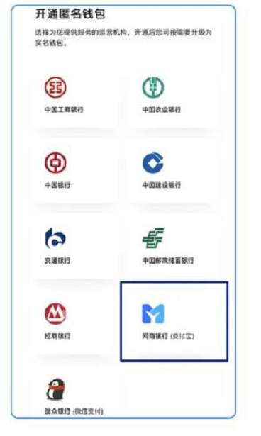 2、下载后,试点地区用户可在数字人民币APP内,选择开通网商银行(支付宝)钱包。