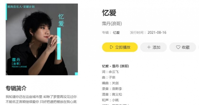 这首歌的歌名叫做《忆爱》,是由关剑编曲,子荣作曲,余云飞作词,霈丹 (浪哥)演唱的一首歌曲,歌曲发行于2021年8月16日。