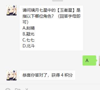 题目:请问璃月七星中的【玉衡星】是指以下哪位角色?