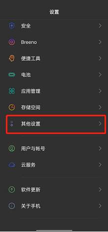 1、进入设置,选择【其他设置】。