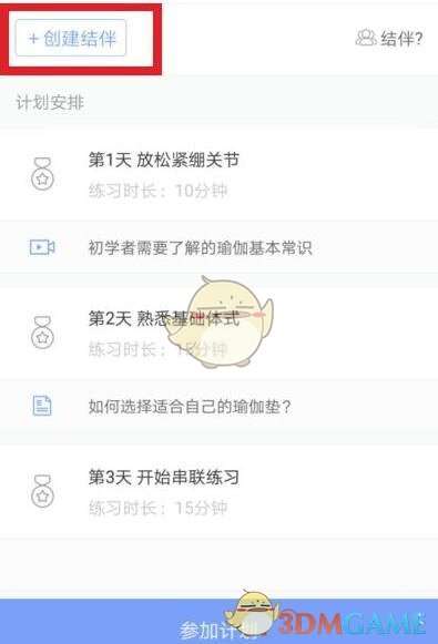 3、在此页“创建结伴”,并且可看接下来数天的瑜伽各种系列安排,点按“参加计划”。