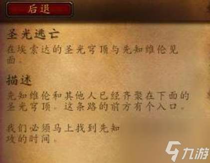 3、到埃索达以后,跟守备官波鲁斯对话,接一个叫“圣光逃亡”的任务,然后去找先知维纶;