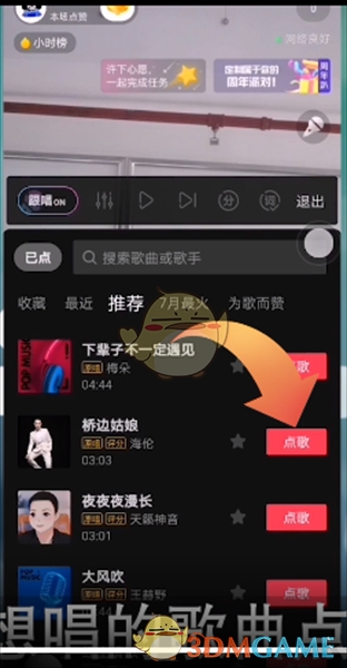 5、然后在选择想唱的歌曲点击后的【点歌】即可演唱歌曲。