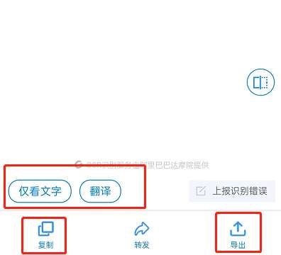 4、识别完成后,复制、导出、翻译、仅看文字都可以,选择需要的功能即可。
