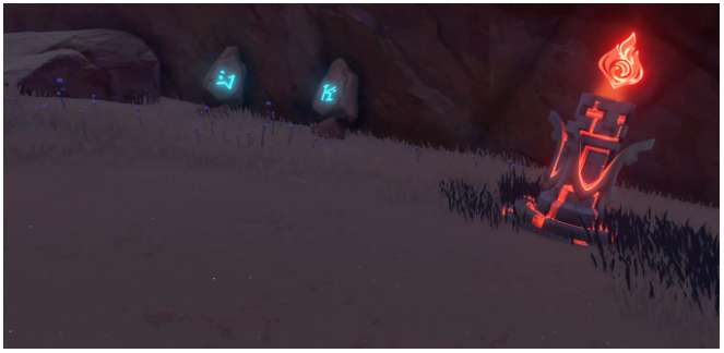 3、这个解密中的火元素方碑需要玩家先完成风化的碑石解谜后才能出现。