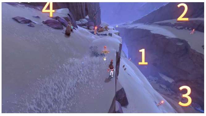 1、亡者狭廊解密四个火元素方碑的位置和点燃顺序分别如下图所示,点亮的方碑顺序就是解密方碑时敲亮的机关数量按1到4排列啦,宝箱旁边的哪一个方碑是第四个点亮的。