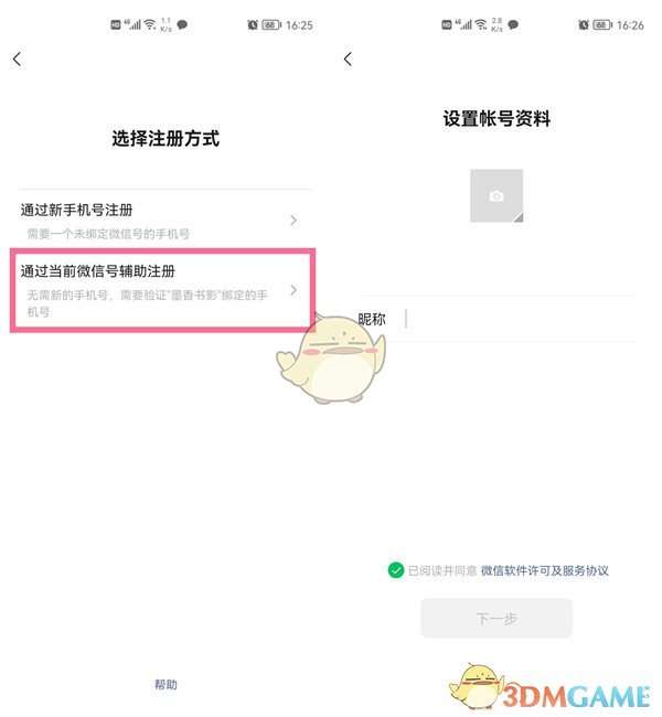 3、选择【通过当前微信号辅助注册】,通过辅助的微信号手机验证后即可注册。