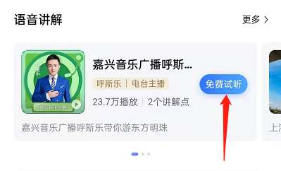 2、选择您想听的语音讲解,点击免费试听。