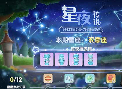 在星夜传说的活动界面里面,可以兑换不同星座的家具物品,这些家具分别代表十二星座,感兴趣的朋友可以全部收集起来,摆放在自己的家园里面,整体效果还是非常不错的。