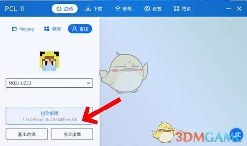 1、点击启动页面,选择想要联机的我的世界游戏版本,启动游戏。