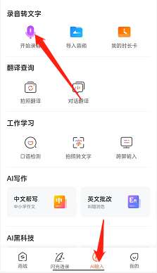 2、然后,选择AI输入,找到上方的开始录音。