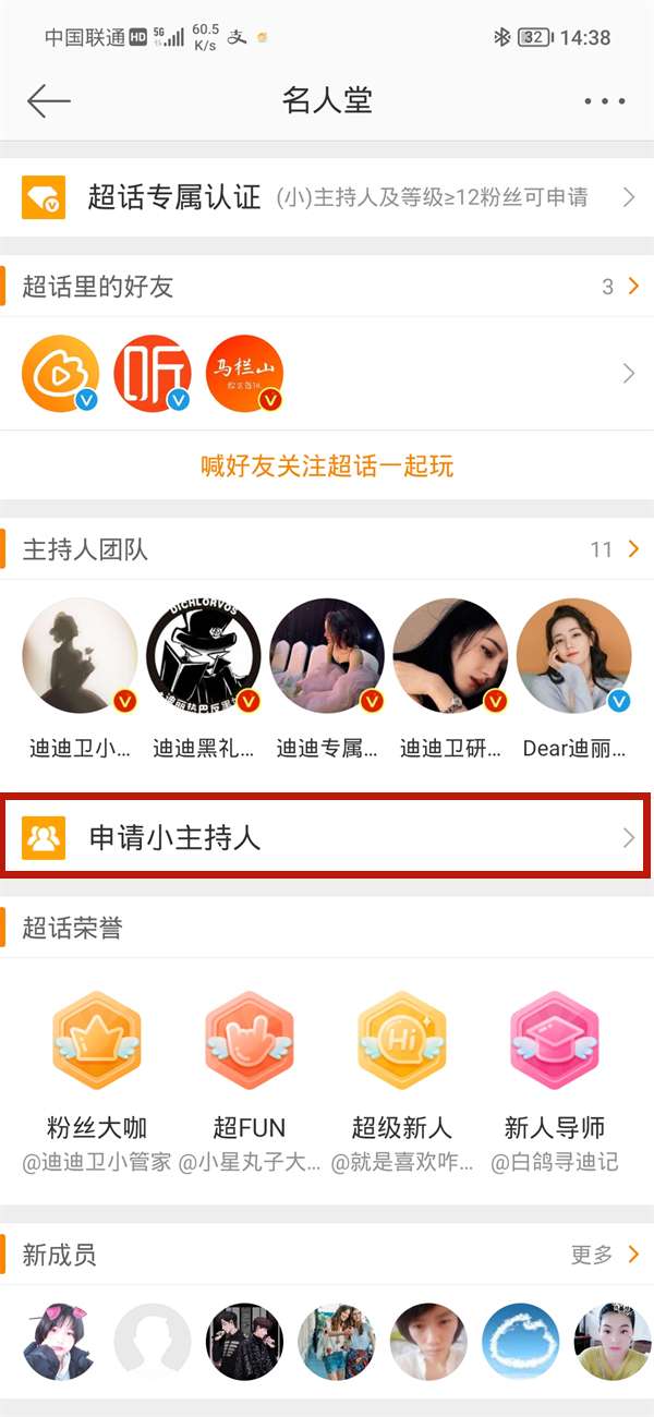 3、点击申请主持人。