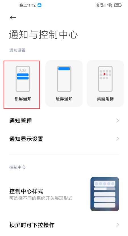 2、点击锁屏通知。