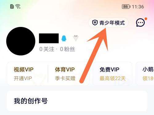 第二步:进入个人中心,点击顶部的【青少年模式】。