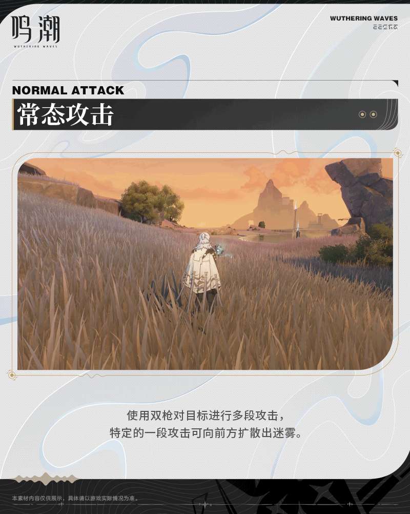 使用双枪对目标进行多段攻击,特定的一段攻击可向前方扩散出迷雾。