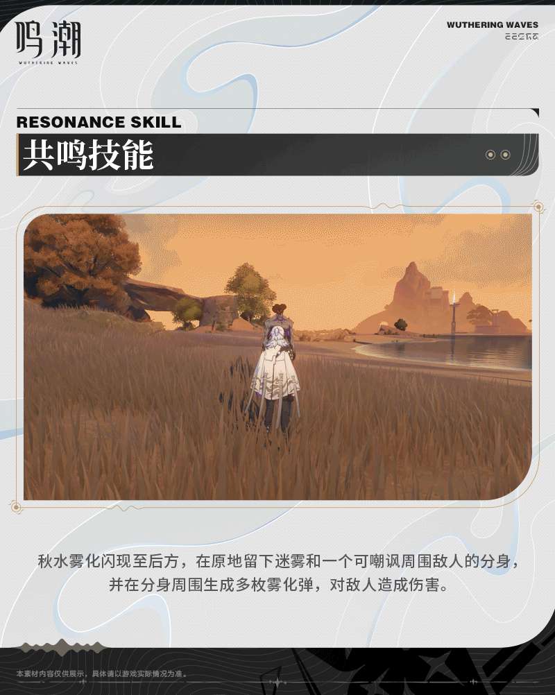 鸣潮秋水技能是什么?鸣潮秋水是一个远程输出角色,手持双枪,能够在较远的地方对敌人造成持续性的攻击。很多小伙伴还不知道鸣潮秋水技能是什么,下面给大家整理了鸣潮秋水技能图鉴,让我们一起来看看吧。