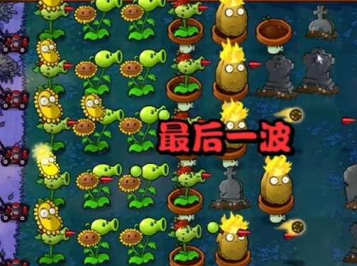 5、中途在人多的位置安放土豆雷或向日葵炸弹,最后一波只需按照下图位置进行摆放即可通关。