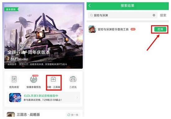 步骤二:快爆app首页—攻略·工具箱——搜索“冒险与深渊”或下拉列表,即可找到【冒险与深渊密令查询器】啦~