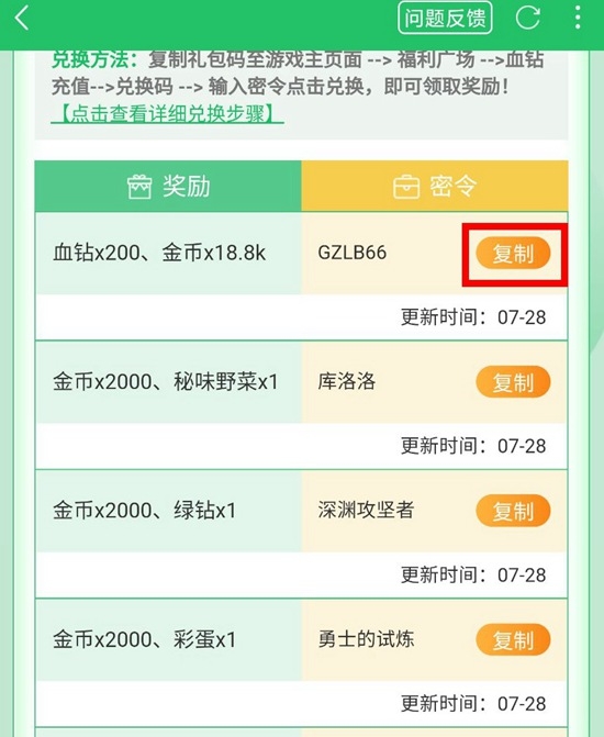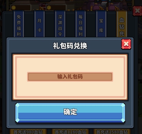 步骤四:到游戏主界面→血钻充值→兑换码→粘贴密令→发送→即可获得相应奖励!