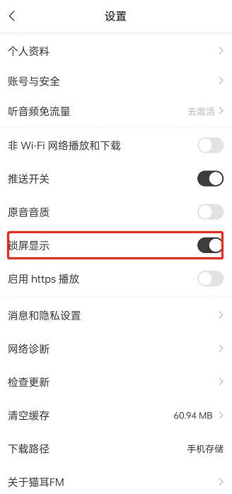 那么,以上就是猫耳fm启用锁屏显示方法介绍的全部内容了,非常感谢大家的阅读!希望这篇教程解答能对各位小伙伴玩家们有所帮助。更多相关软件教程请关注十大评测网。