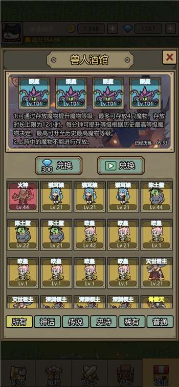 关于战力提升顺序大概就是等级—装备—升星—刷变异—羁绊这样一个顺序吧,等级提升这里说一下因为游戏里金币和经验需求量可以说是巨大,每天的加速和离线奖励真的太少了,所以要用到兽人酒馆。