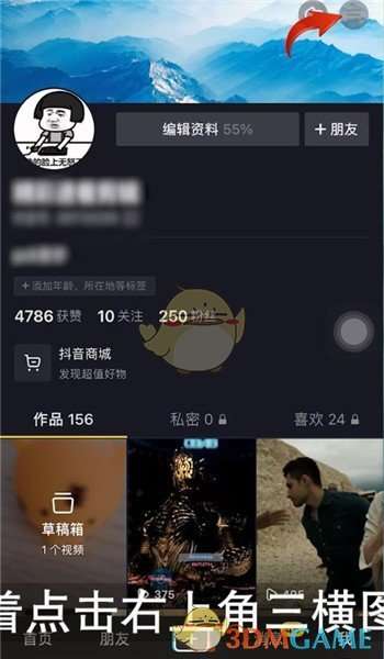 1、打开【抖音】客户端,然后点击右下角【我】图标,接着点击右上角三横图标,