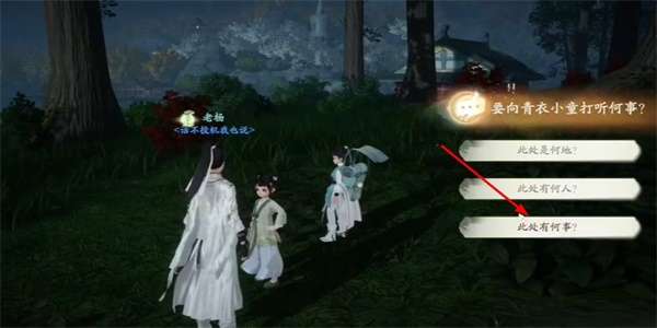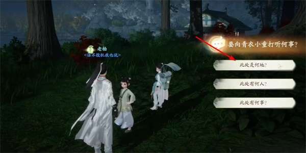 3、然后再和小孩进行对话,在对话当中把三个选项全部都问一遍。