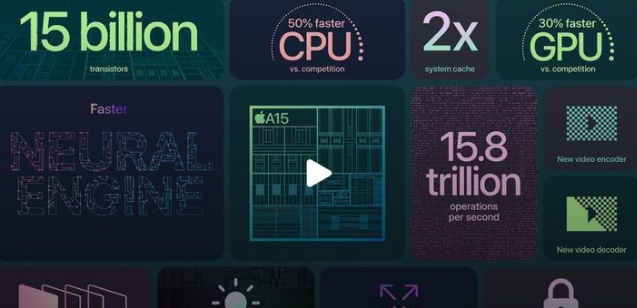 1、A15 芯片拥有 5 核心图形处理器(iPhone 13 系列为 4 核心图形处理器);
