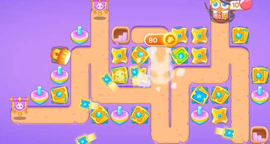 2、打掉道具之后,我们在魔法阵上面继续放置卡牌,增加前面的清线能力,然后使用后面的炮台清理右边的道具。