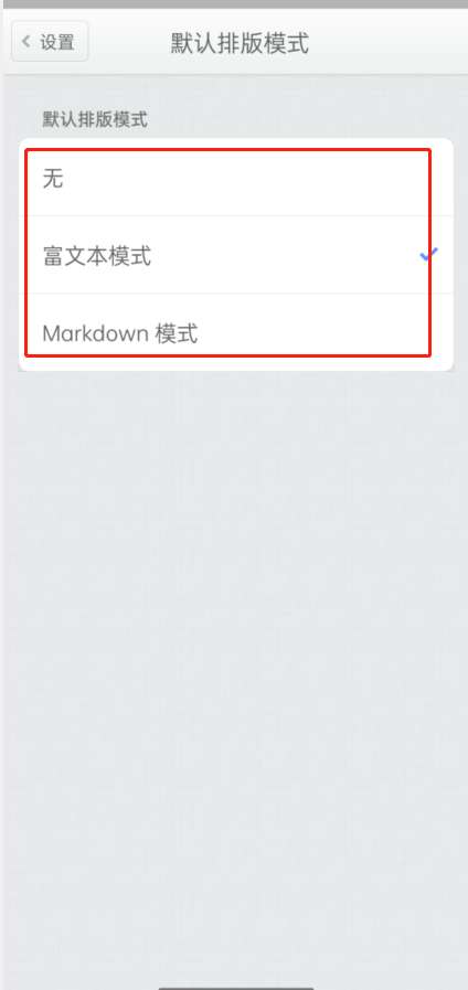 2、选择【默认排版模式】。