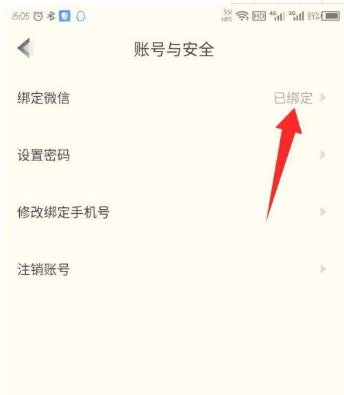 4、接着找到绑定微信选项,点击已绑定,如图所示。