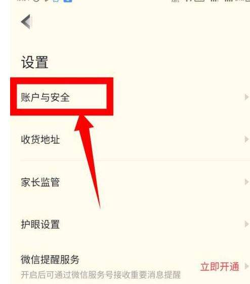3、进入设置页面后,点击最上面的账户与安全,如图所示。