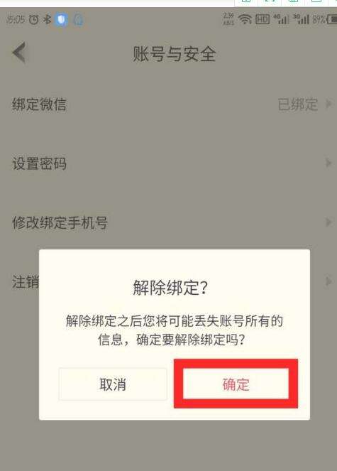 5、会弹出解除绑定的窗口,点击确定,如图所示。