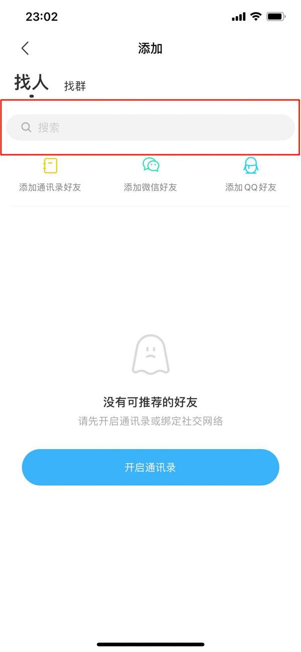 2、在添加界面中,选择找人,然后输入账号昵称查找即可。