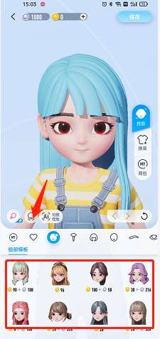 3、选择下方的模板,你可以切换各种妆容发型,然后点击如图的捏脸小符号就可以开始制作。