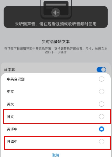 华为AI字幕怎么翻译日语