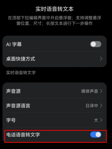 接电话前打开AI字幕,对方说的话会实时转为文字。