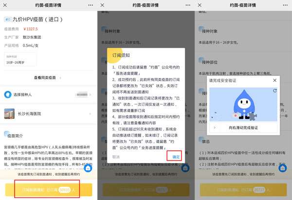 3、点击订阅到苗通知,点击确定,根据提示完成验证即可。