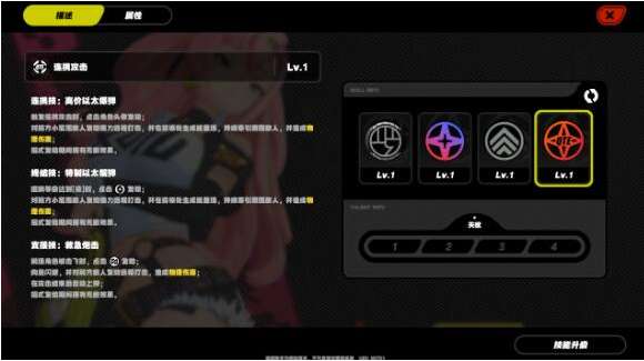 在[普通攻击]过程中附加子弹攻击,强化打击伤害和范围。