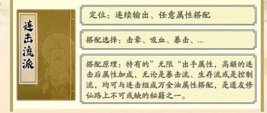 它拥有“无限”的出手属性,在连击之后还能获得极高的属性加成,不管是暴击流、生存流还是控制流,都可以和连击组合在一起成为万金油属性搭配,是道友修仙路上的必备秘籍之一。